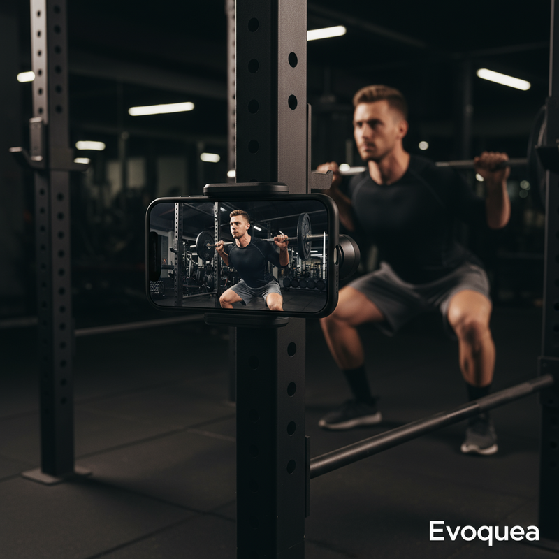 Record every rep and perfect your form hands-free. The Evoquea Magnetic Phone Holder attaches instantly to gym equipment with 360° rotation and adjustable grips. Your ultimate training companion.